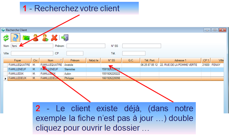 Le client existe déjà, mise à jour du dossier